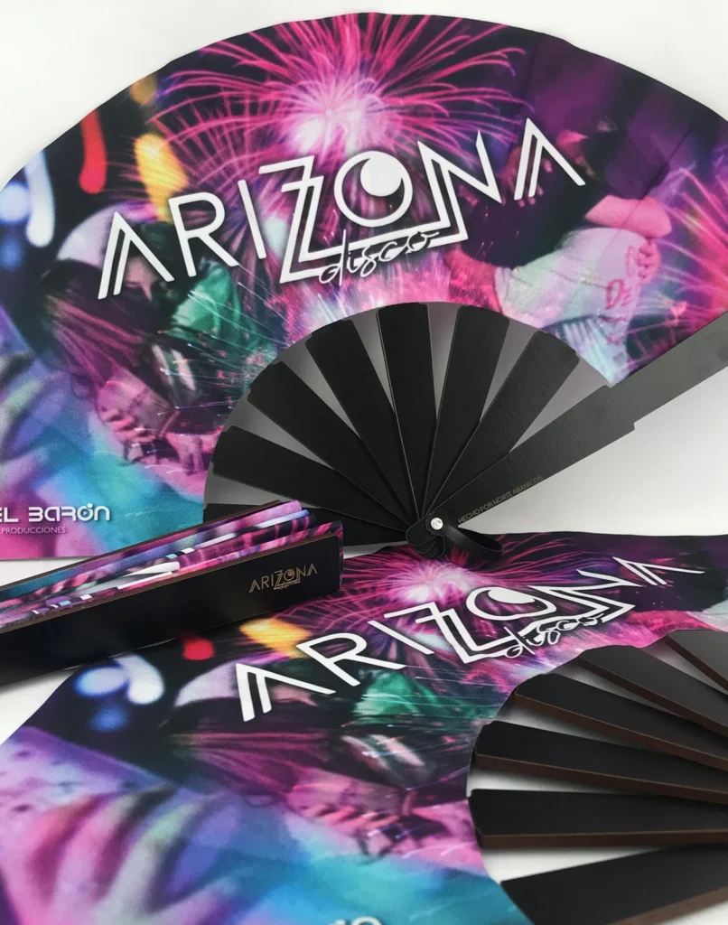 Abanicos que vibran con la noche. Ideales para promociones, fiestas temáticas o branding dentro del boliche, combinando diseño y frescura.